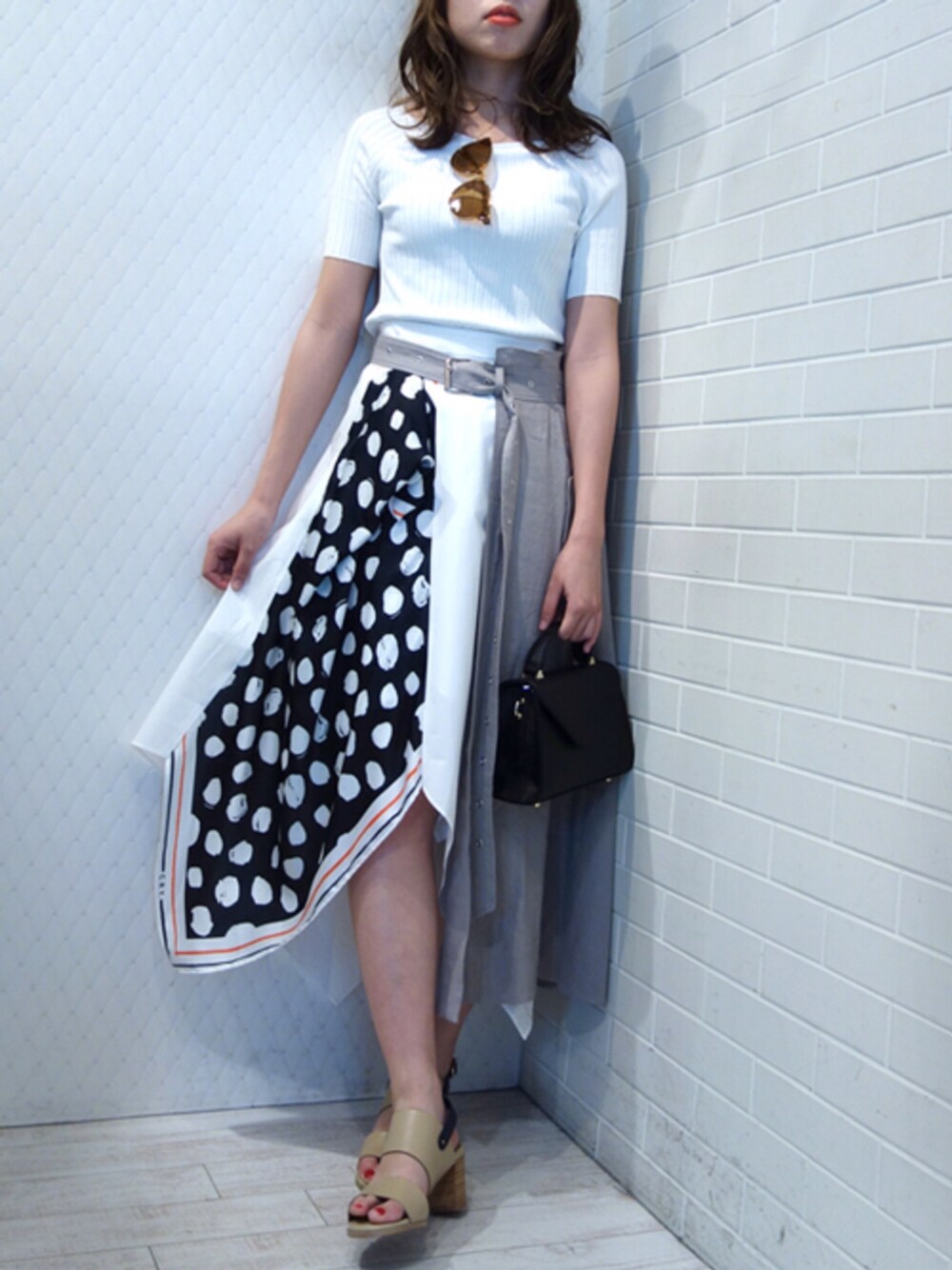 スカーフをまとったようなエッジの効いたデザインの巻きスカート ランダムなヘムラインが軽やかに