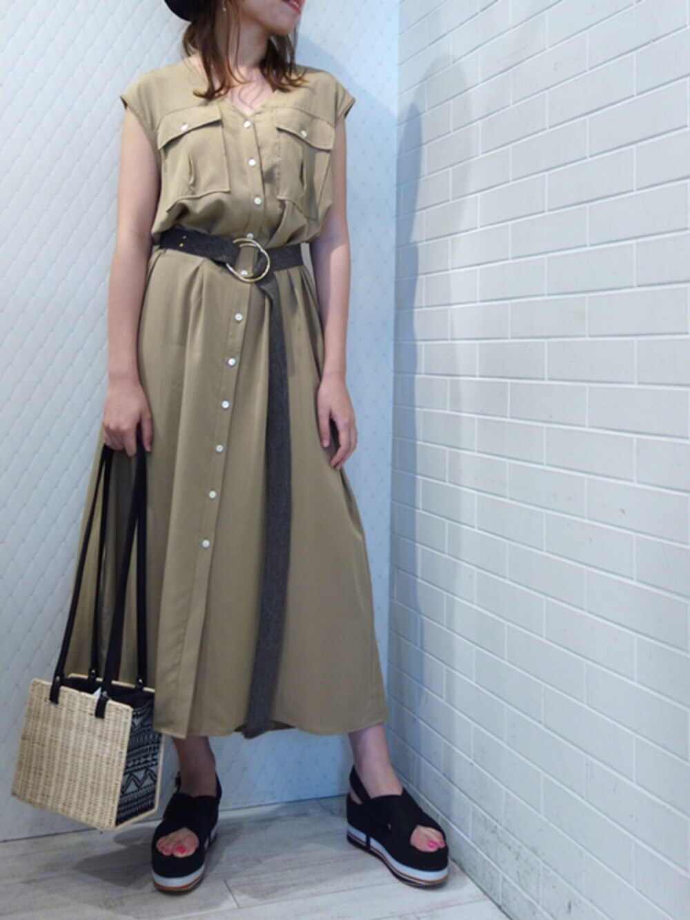 フレンチスリーブで二の腕をカバー 落ち感のきれいなワンピースは前開きなので・・・・ ロングジレとしてもオススメ