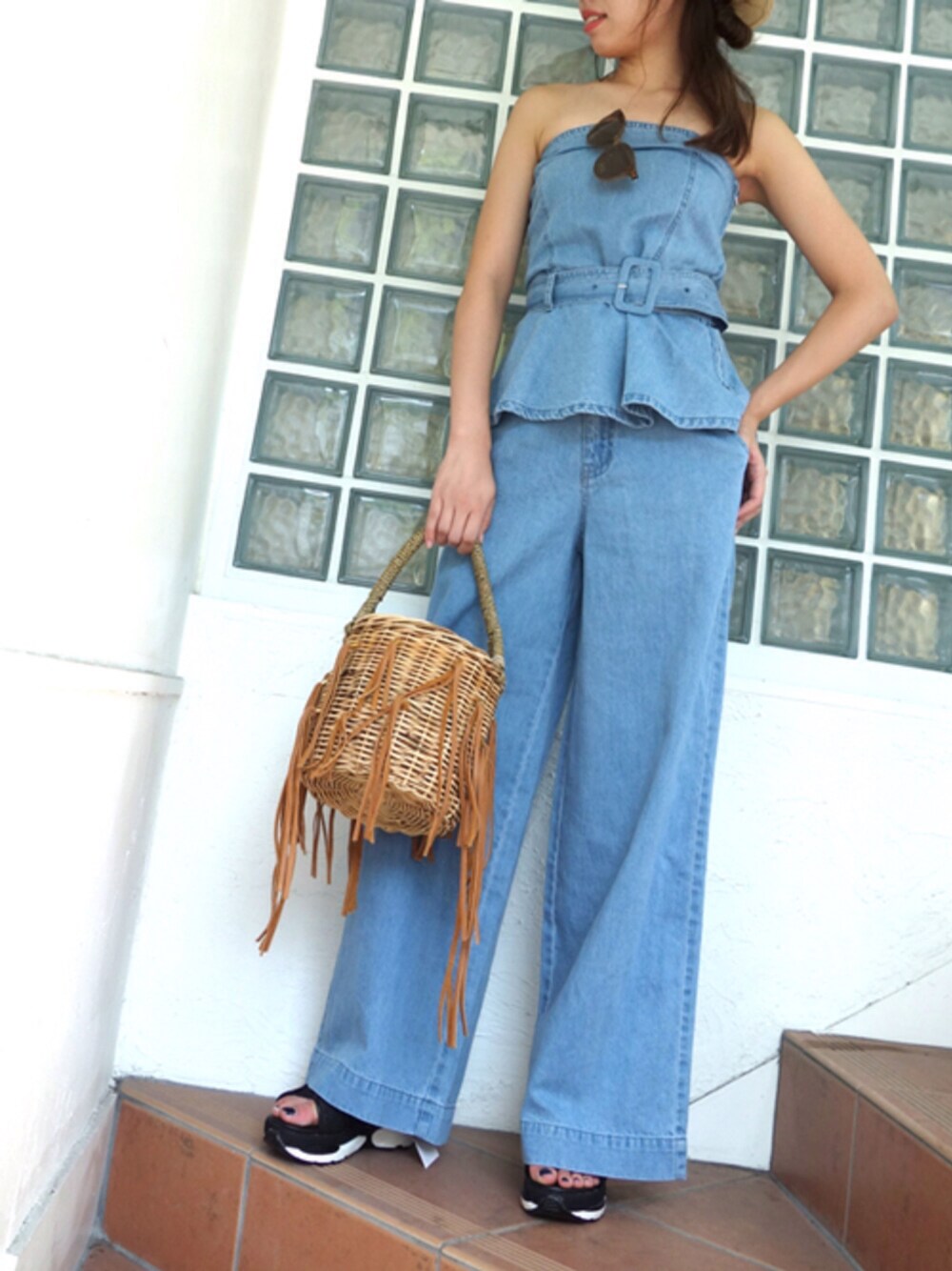 レーヴルのかごバッグ「LUDLOW ラドロー フリンジ バスケット バッグ」を使ったコーディネート