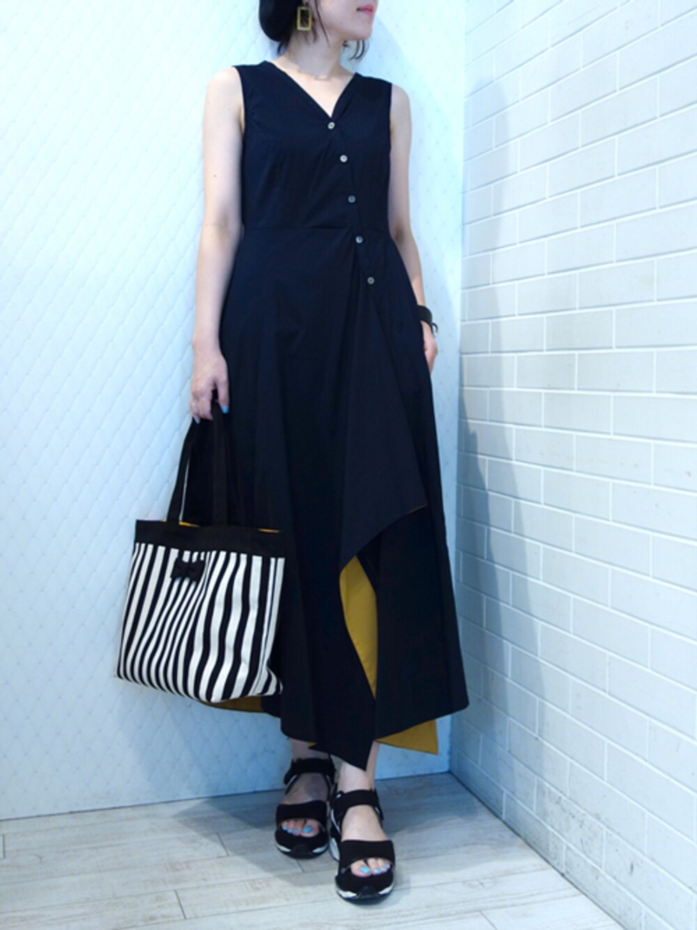 レーヴルのトートバッグ「intoxic. basic tote stripes BK」を使ったコーディネート