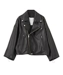 ロックなライダースもゆるっとオーバーサイズ×落として着るのがオシャレな着こなし 光沢のあるパープルのプリーツスカートでキメキメコーデです