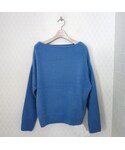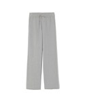 細いラインがカジュアルすぎない大人のラインパンツ 淡いブルーニットで清潔感のあるスタイルに