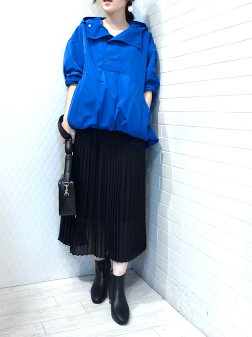 カジュアルなウィンドブレーカーをきれいめスカートとのコーデでカジュアルダウン