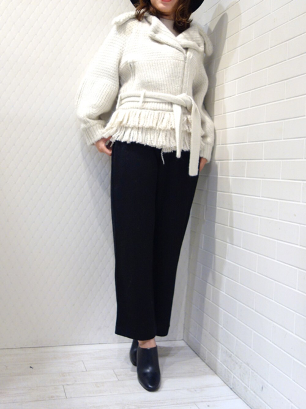 ライダース風のニットブルゾン ハードになりすぎない可愛さのあるブルゾンコーデ
