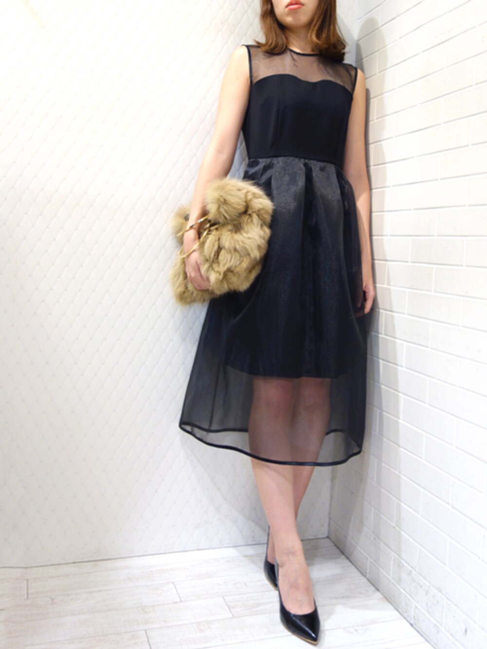 オーガンジーとサテンのフェミニンドレスコーデ