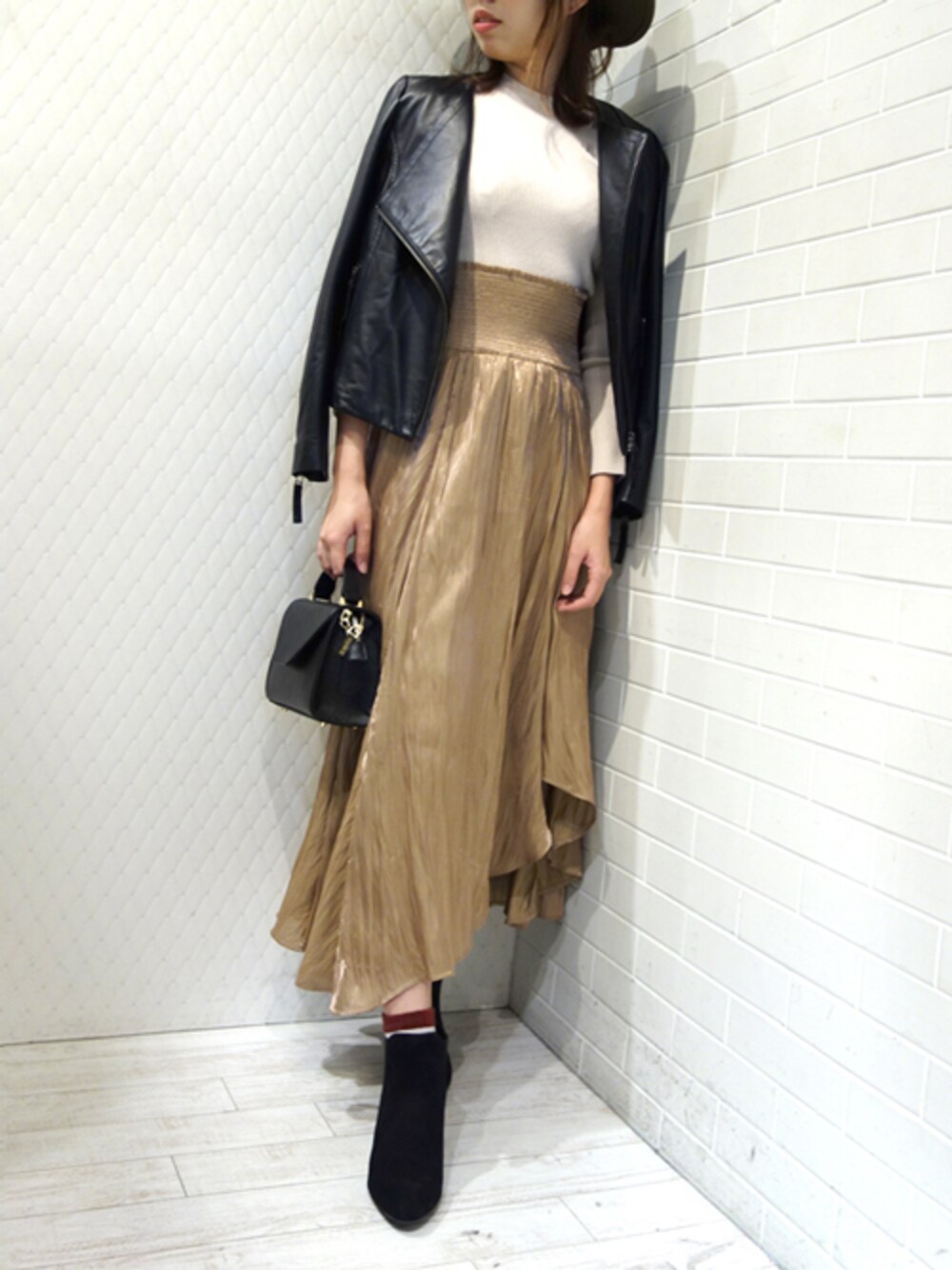 レーヴルのライダースジャケット「GRACE CONTINENTAL ラムライダースジャケット」を使ったコーディネート