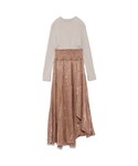 ニットとキラキラ光沢のあるスカートのコンビワンピース ふんわりゆらめくシルエットが上品です。