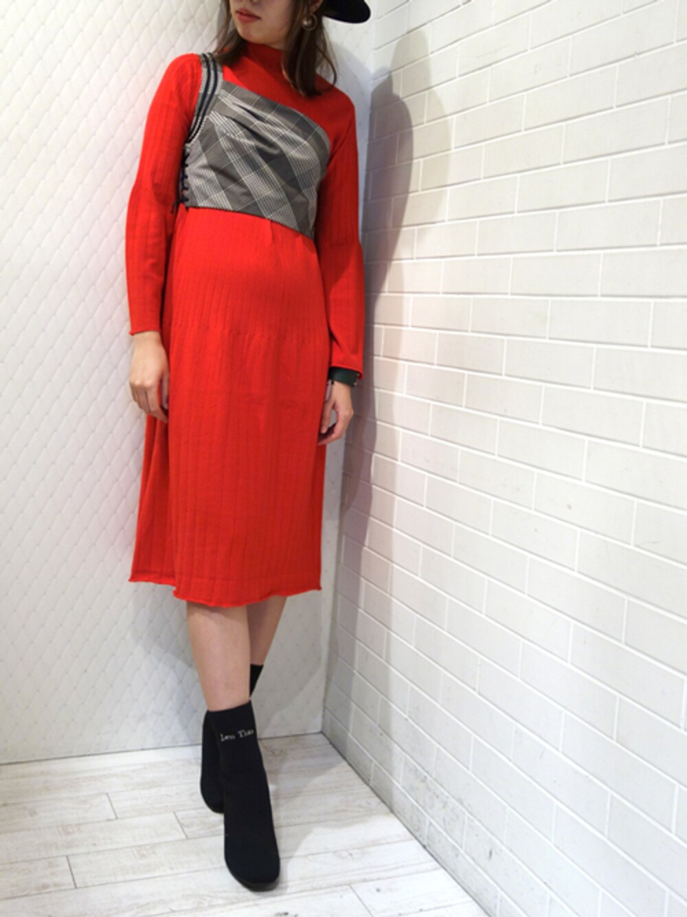 真っ赤のニットワンピースでクリスマス気分