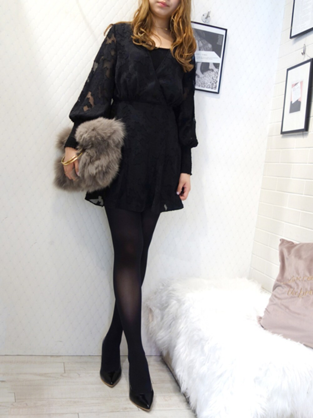透け感のあるフェミニンなミニドレスワンピース クリスマスなどのパーティーシーンにもオススメ