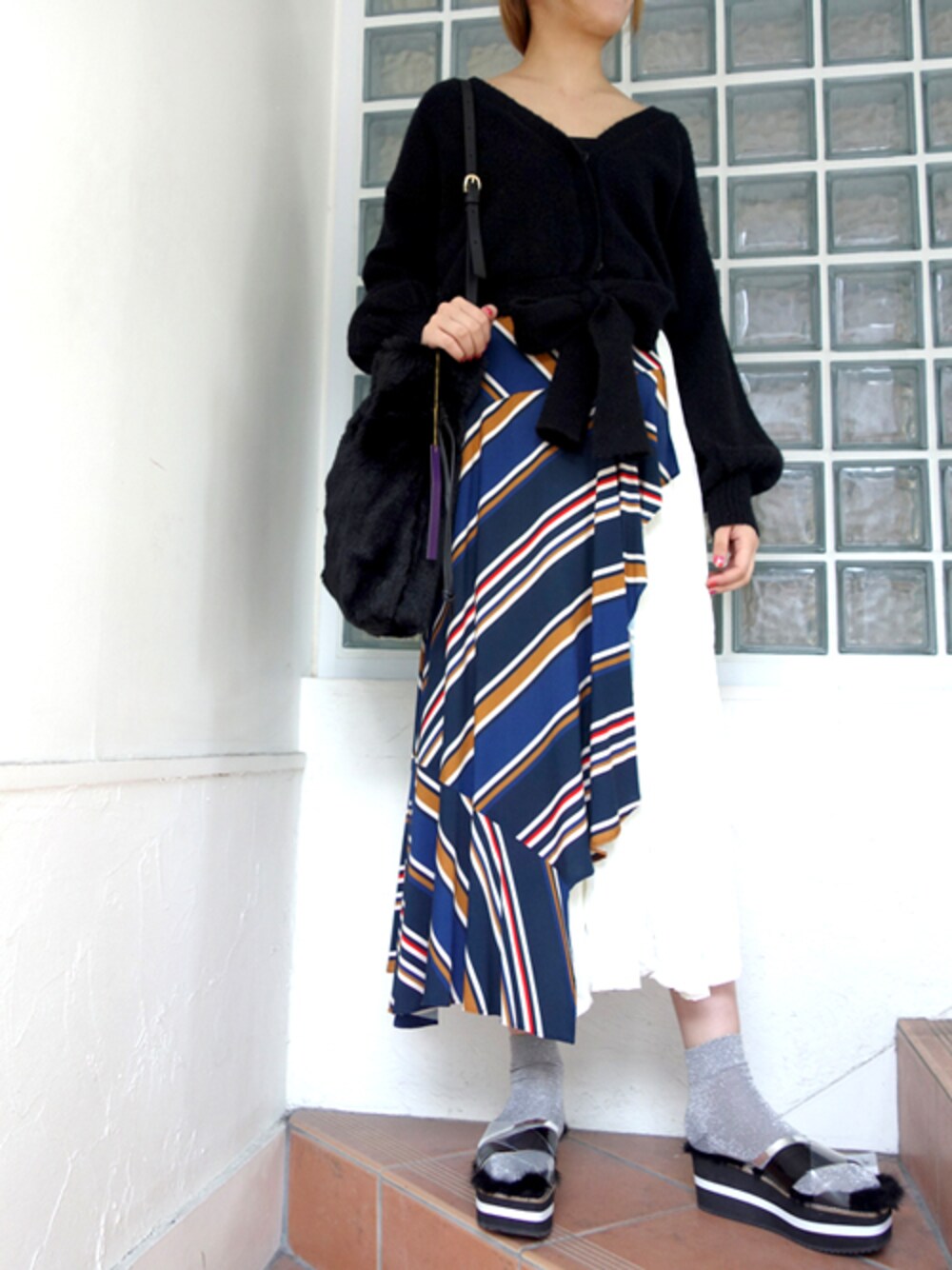 ラップスカートを別のスカートとレイヤードしたアレンジスタイル