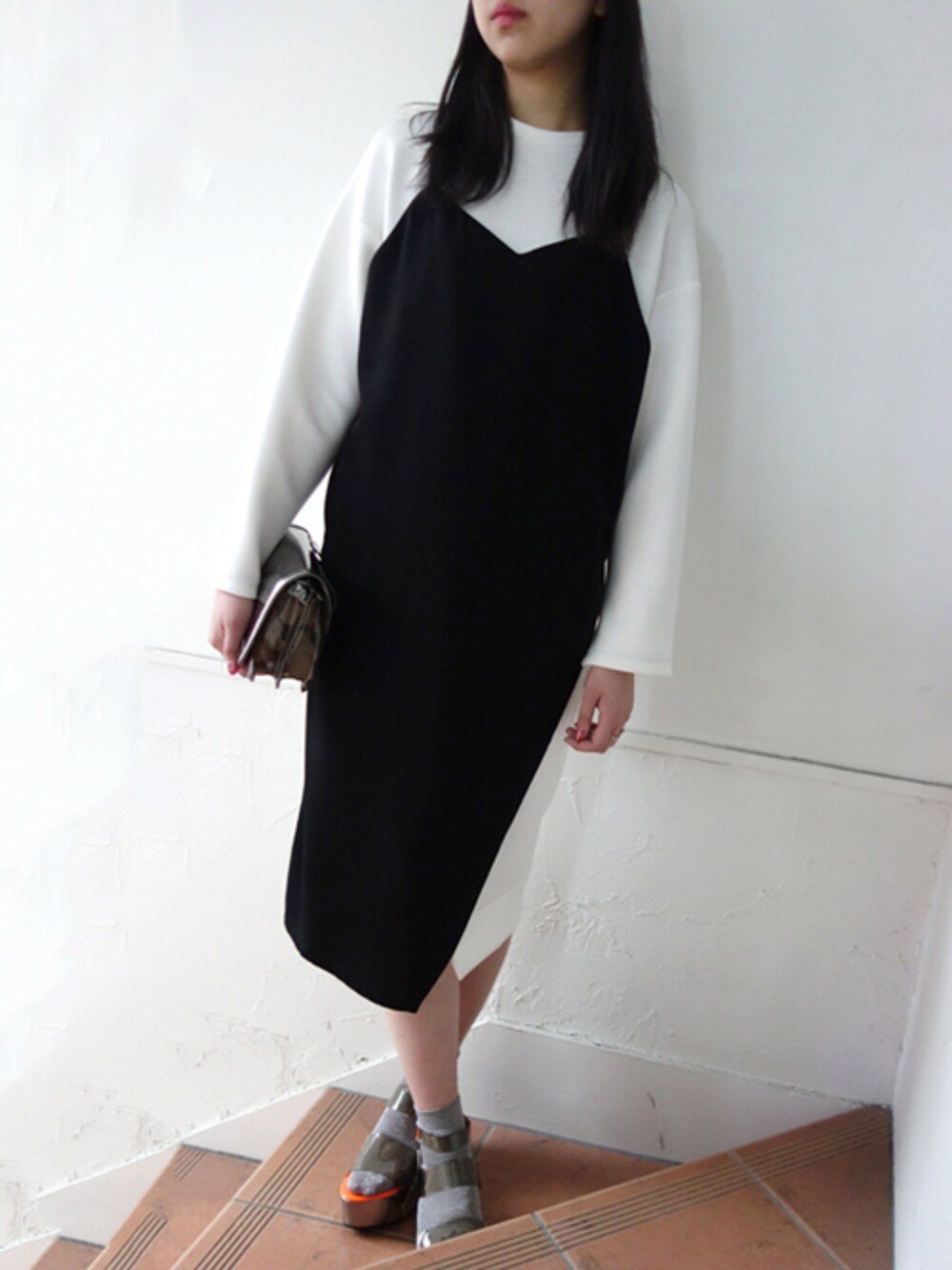 レーヴルのワンピース「AULA AILA SATIN LAYERED ONE PIECE」を使ったコーディネート