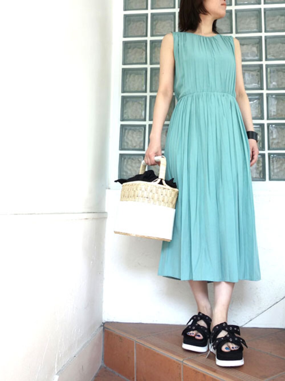 レーヴルのかごバッグ「ELENDEEK SQUARE BASKET ECO LEATHER GAG」を使ったコーディネート