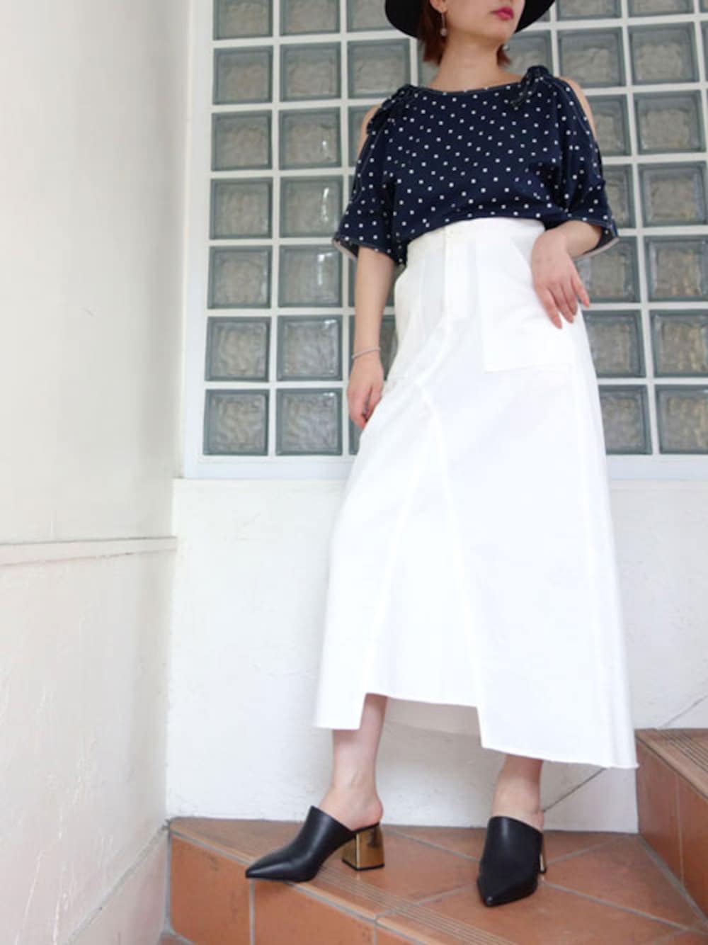 ネイビー×ホワイトのテッパン清楚カラー ダイヤ柄のドットなので甘くなりすぎない清潔感のあるスタイルに