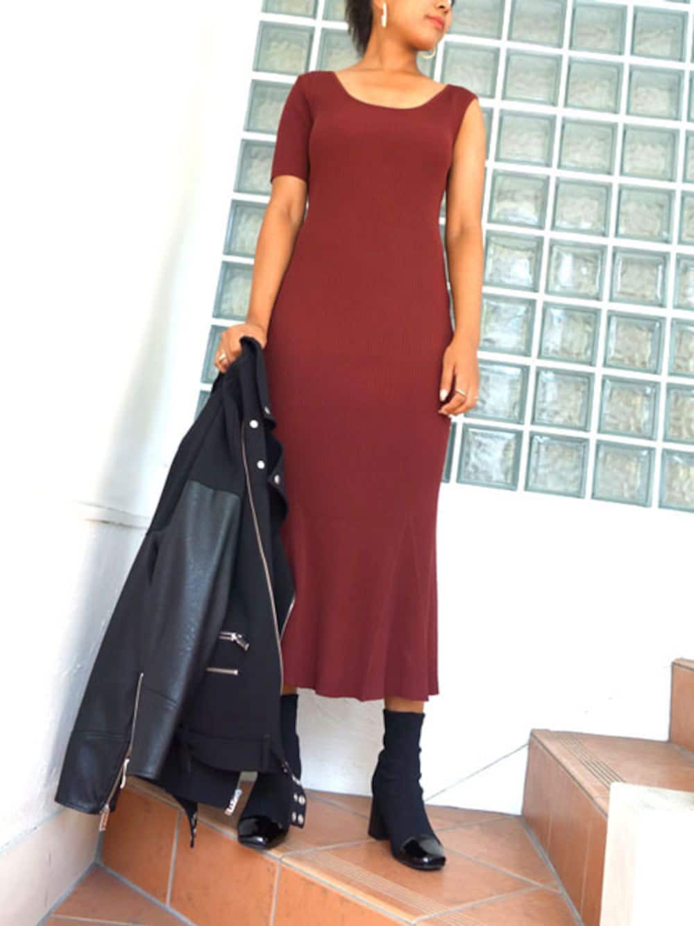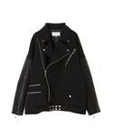 オーバーサイズのライダース×ニットワンピース 甘辛スタイル