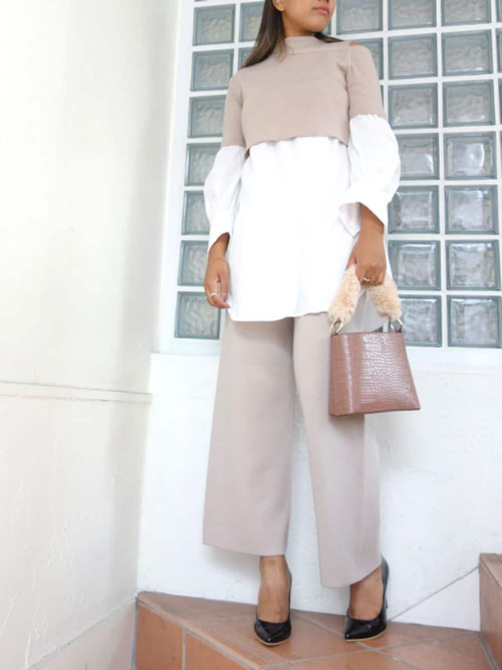 レーヴルのニット/セーター「ELENDEEK ロングシャツレイヤードニット」を使ったコーディネート