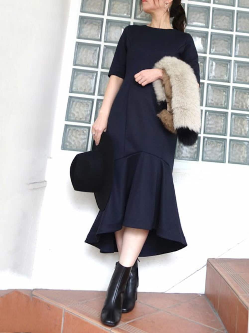 シルエットを綺麗に描くラッフルヘムとバックテールで、印象的に魅せてくれます。
