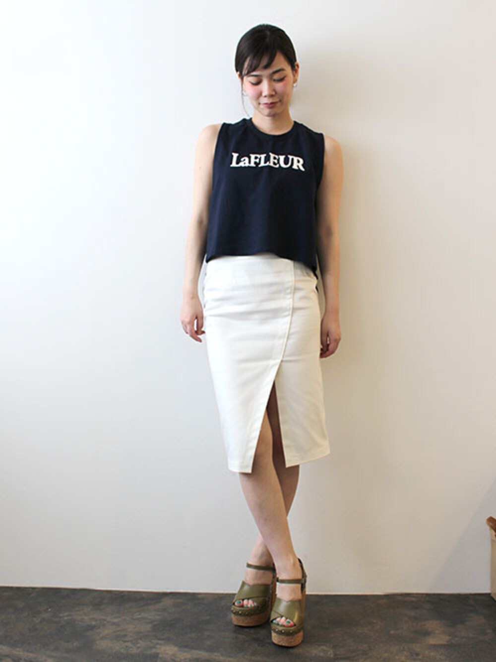 レーヴルのタンクトップ「tap roots バックシフォンタンク」を使ったコーディネート