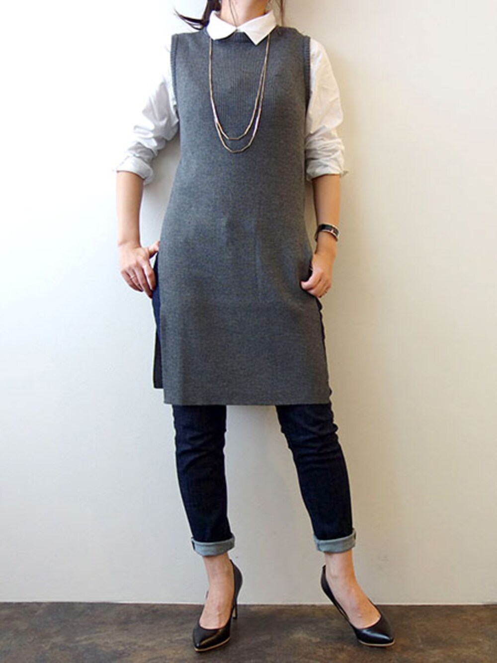 実はニットにネックウォーマーがついてます。ネックウォーマー付きのコーデもみてね。