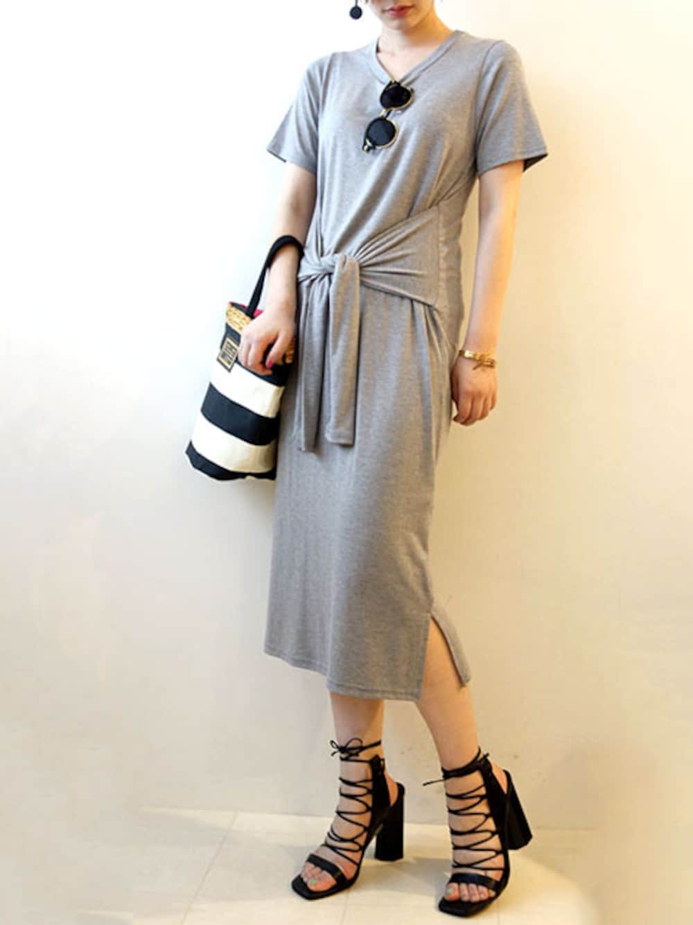 腰巻風のTシャツワンピースで休日スタイル!! シンプルなときは小物で遊びを注入
