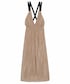 シャーリングの効いたルーズなワンピースは光沢もあって上品な装いに