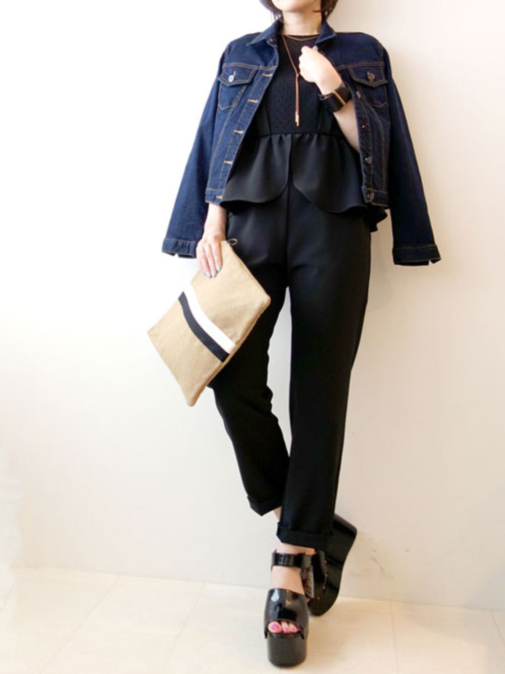レーヴルのつなぎ/オールインワン「kaene ドットシフォン ぺプラムオールインワン」を使ったコーディネート