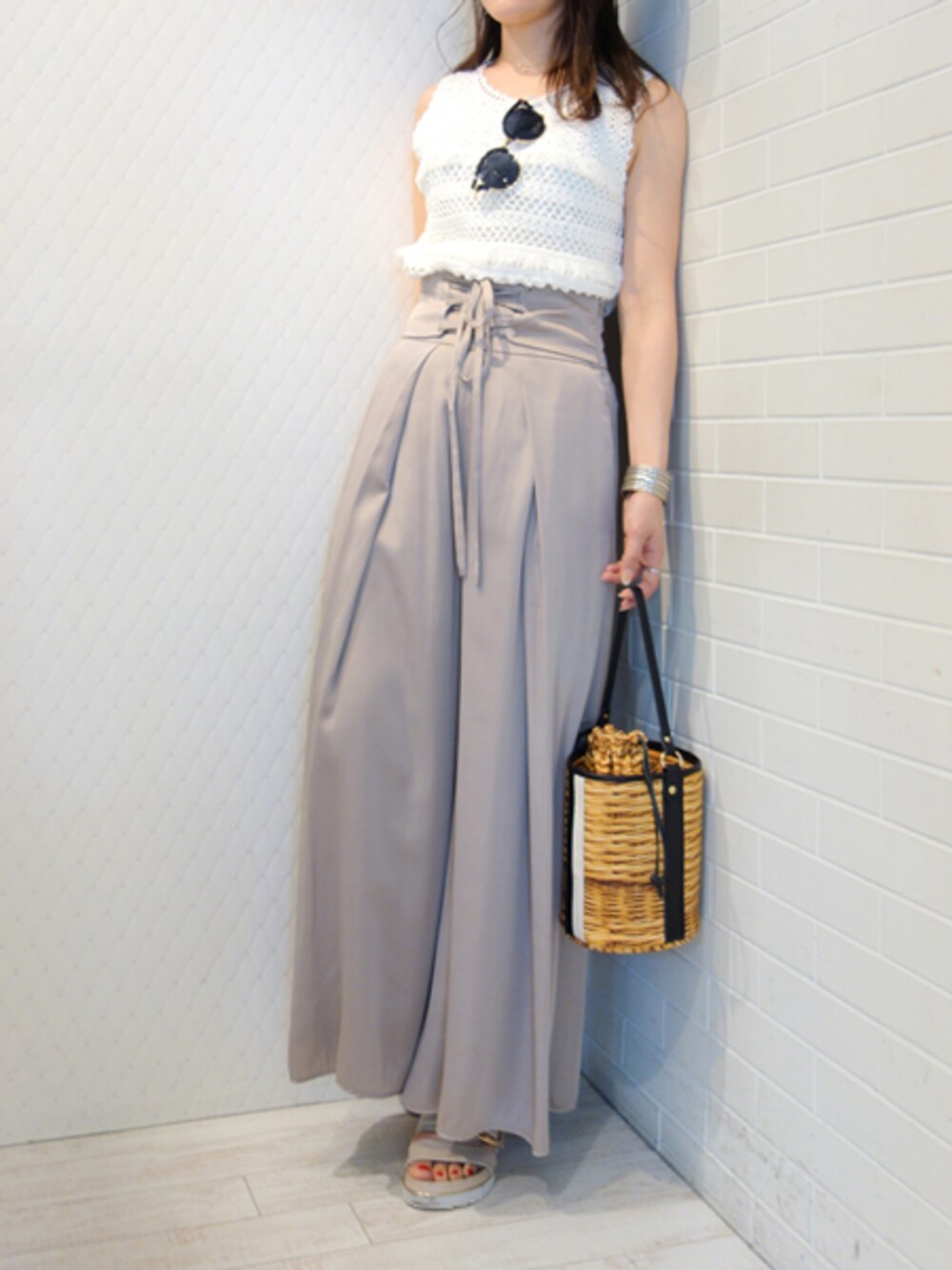 ウエストのレースアップがハイウエストにみせてスタイルUPに