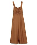 高めのウエスト位置での切り替えがスタイルよくみせてくれるサロペット 大胆にあいたバックはリボンとフレアスカートのように広がるラインで上品です。
