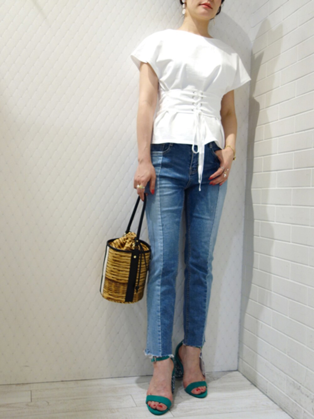 今年トレンドのコルセットTシャツでカジュアルコーデ