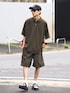 セットアップ風にもできる👍🏻 173cm Big polo shirt Lサイズ × nylon shorts XLサイズ