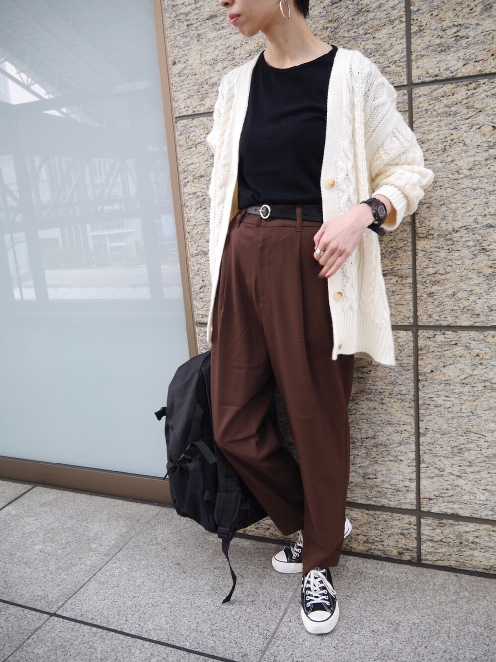 綺麗な形のテーパードパンツが 入荷しました(^^) 分厚すぎない素材で、 今からすぐ履いていただけますよ☆ 画像をクリックすると出てくる 別verの写真も是非チェックしてみてくださいね!