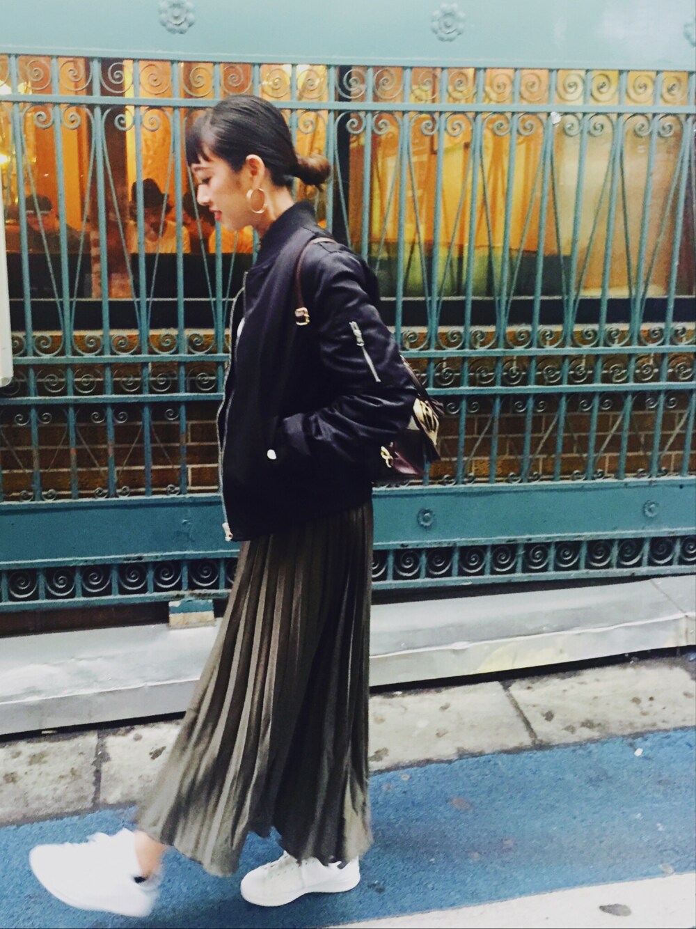 横浜中華街🐼💓 寒かったので ブルゾン✖️ロングスカート