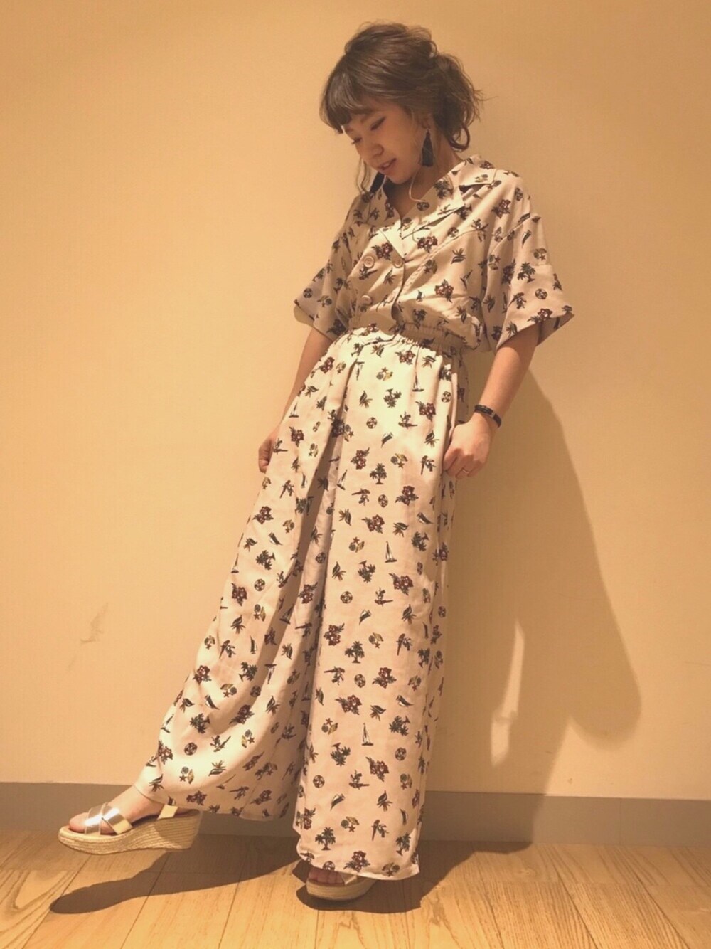 1枚でとってもお洒落にコーデが決まるジャンプスーツです☆ 夏らしい柄がとても可愛く、サンダルと合わせるとより季節感がでます♪