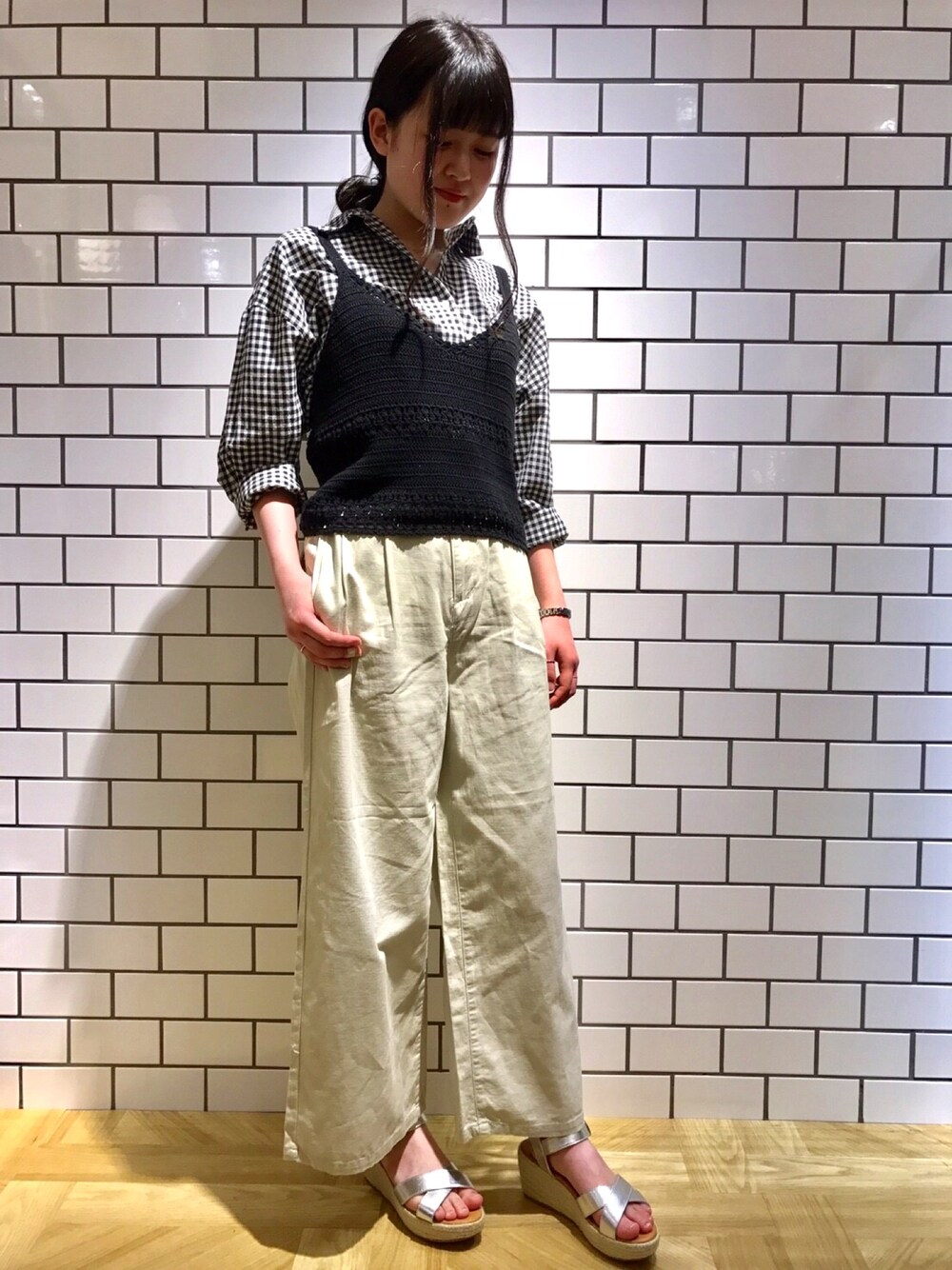 シャツ×ビスチェのトレンドを取り入れたカジュアルコーデです! 全体的に落ち着いた色でまとめることでトレンドスタイルも取り入れやすくなります☆