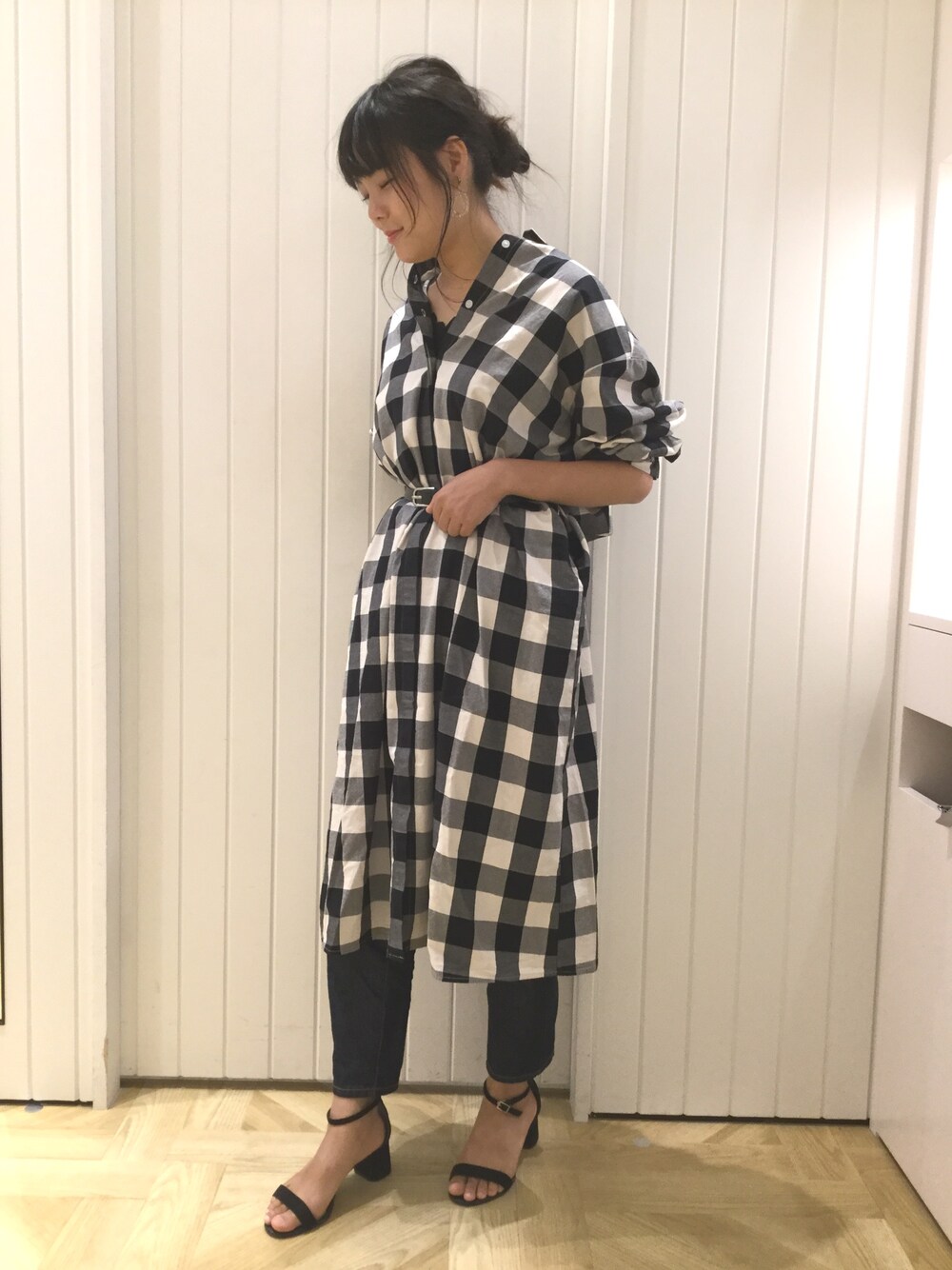 大人気のバッファローシャツワンピ! 羽織にもできて着回し抜群です👌 柄ワンピ1枚も、デニムとサンダルで軽さを出すとバランス良い◎◎です😊💓