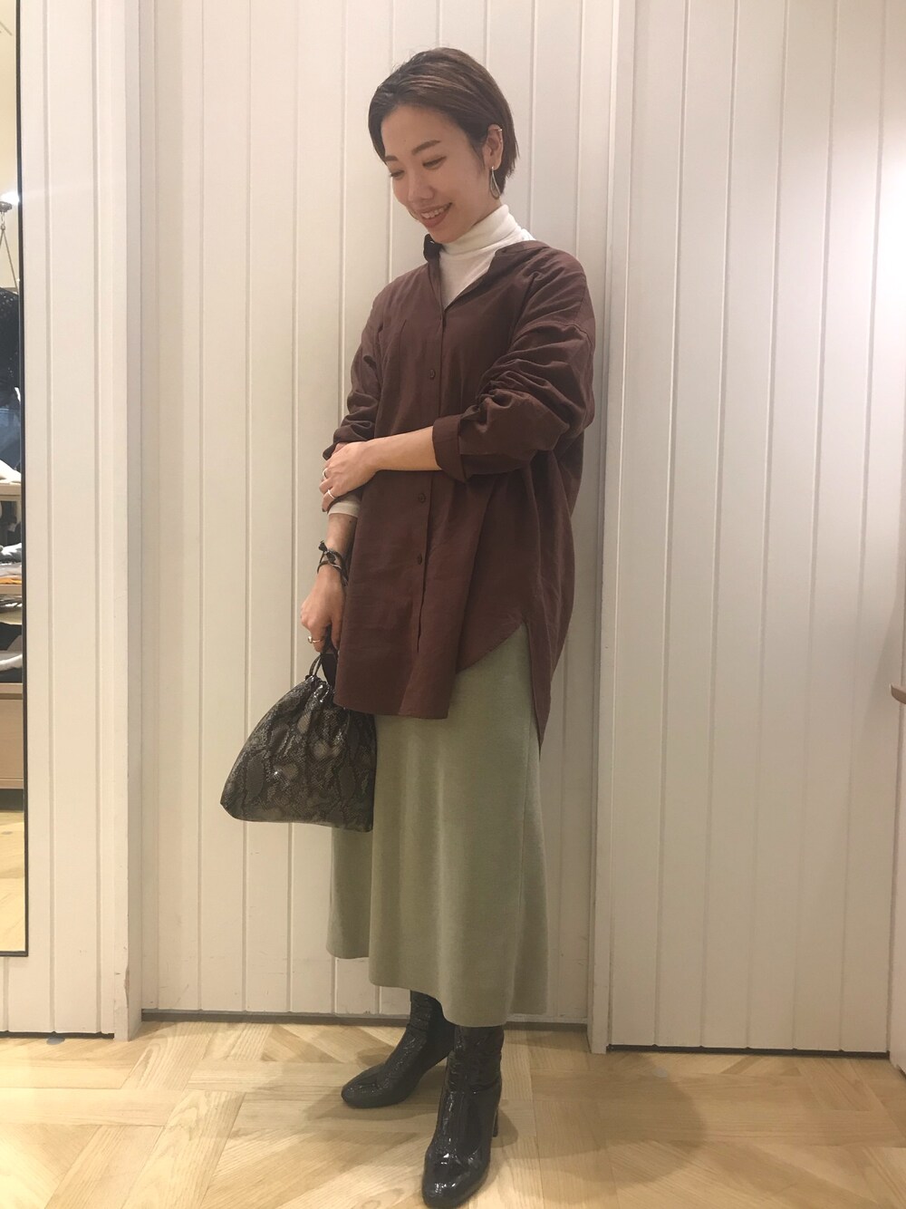 着回しに大活躍な、バンドカラーシャツのコーディネートです💛 羽織にしても◎、上からスウェットを重ね着してもかわいいので 今の季節にぴったりの一枚です😏 スリットも大きめに入っているので インしなくても、バランスの良い仕上がりになります!