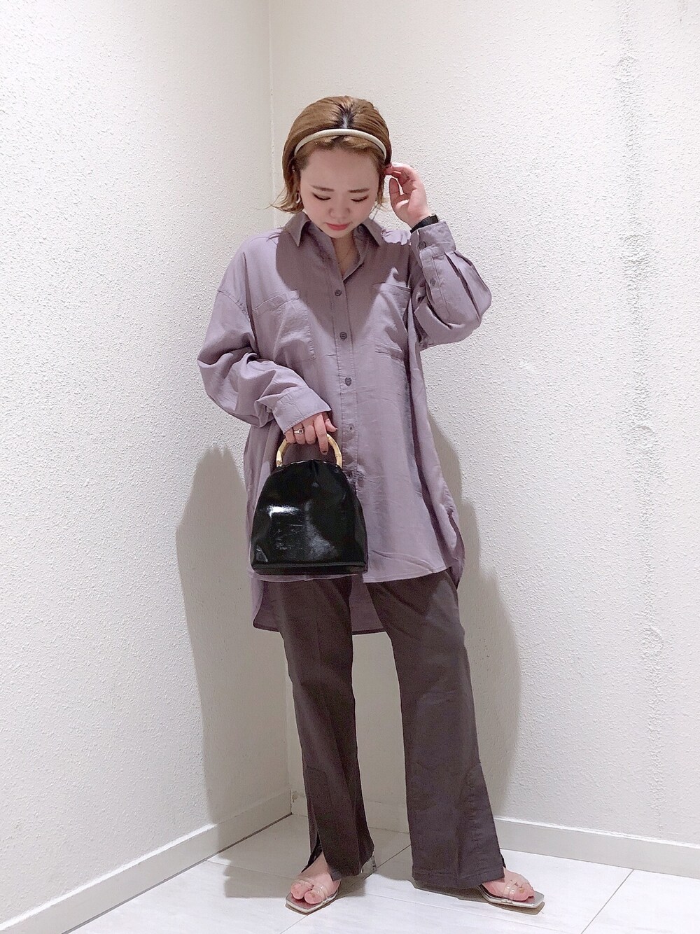 いつもご覧いただきありがとございます🥰💓 エコリネンのシャツにリネンのパンツを 合わせて涼しげな春スタイル🌸 パープルとチャコールグレーの 組み合わせでカチッと大人らしさを♪♪