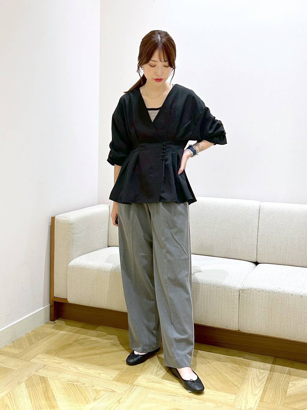 ♦クルミボタンカシュクールLS♦ 前後2WAYで着られます。 紐付きなので、ウエストをブラウジングしても可愛く着て頂けます☻ 紐が長めなので2重にしても◎ ♦TRスタイルupワイドパンツ♦ 身長167cm、Mサイズ着用 ストレートシルエットで、縦長のシルエットなので脚長効果があります。 踵より少し上の丈感でした☆ Instagramも投稿中▷▶︎▷ こちらも是非フォローお願いします♡