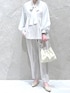 ジレ▶▷▶ ふわっと広がるシルエットで体型カバーできます♡♡ 深めのVネックなので首周りもスッキリです! パンツ▶▷▶ 身長167cm Lサイズ テーパードシルエットですっきりと見えます。 くるぶしくらいの丈感でした☆ ネイビーはこちら▶▷▶ レビュー動画はこちら▶▷▶ Instagramも投稿中▶▷▶ こちらも是非フォローお願いします♡♡