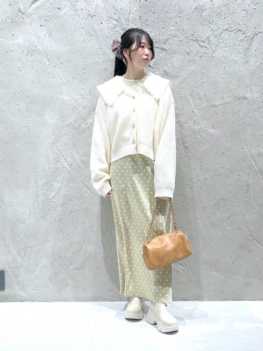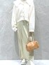 カーデ▶▷▶ 身長167cm freesize 襟は取り外し可能です。 ショート丈なのでワイドなパンツやロングスカートと相性抜群です♡♡ 普段甘めコーデしない方にも◎ グレーはこちら▶▷▶ スカート▶▷▶ 身長167cm Msize Mサイズを履いてみました☆ 足首くらいの丈感でした。 広がりすぎないデザインでストンと落ちてくれるので、細見え効果抜群です。