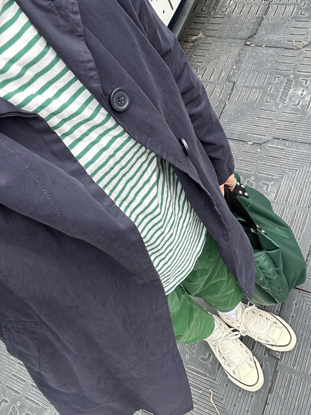 朝はちょっと肌寒かったね… 今日はグリーンxネイビーで〜♪