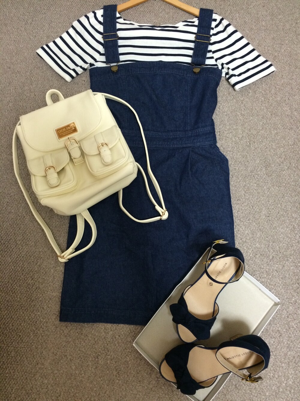 マジェの青色コーデ♩ 夏らしくホワイトのリュックをワンポイントにしてみました。