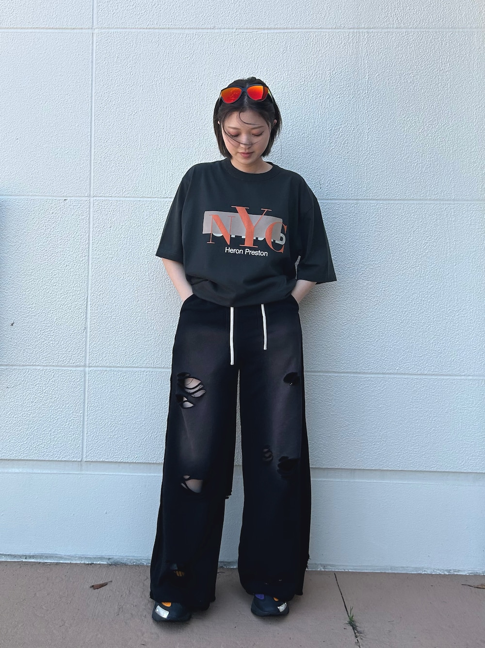 Aoi(L.H.P PRIVATE LAB 三井アウトレットパーク木更津店)のスウェットパンツ「【WEB&DEPOT限定】DankeSchon/ダンケシェーン/ダメージスウェットパンツ」を使ったコーディネート
