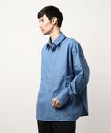 薄手のワークシャツなので一枚はもちろんロンTやTシャツの上にぴったりなアイテムです。 全体的にルーズなシルエットがトレンドなストリートファッションに仕上がってます。 シルエットにメリハリをつけたい方は定番黒スキニーなど合わせていただくのがオススメです。