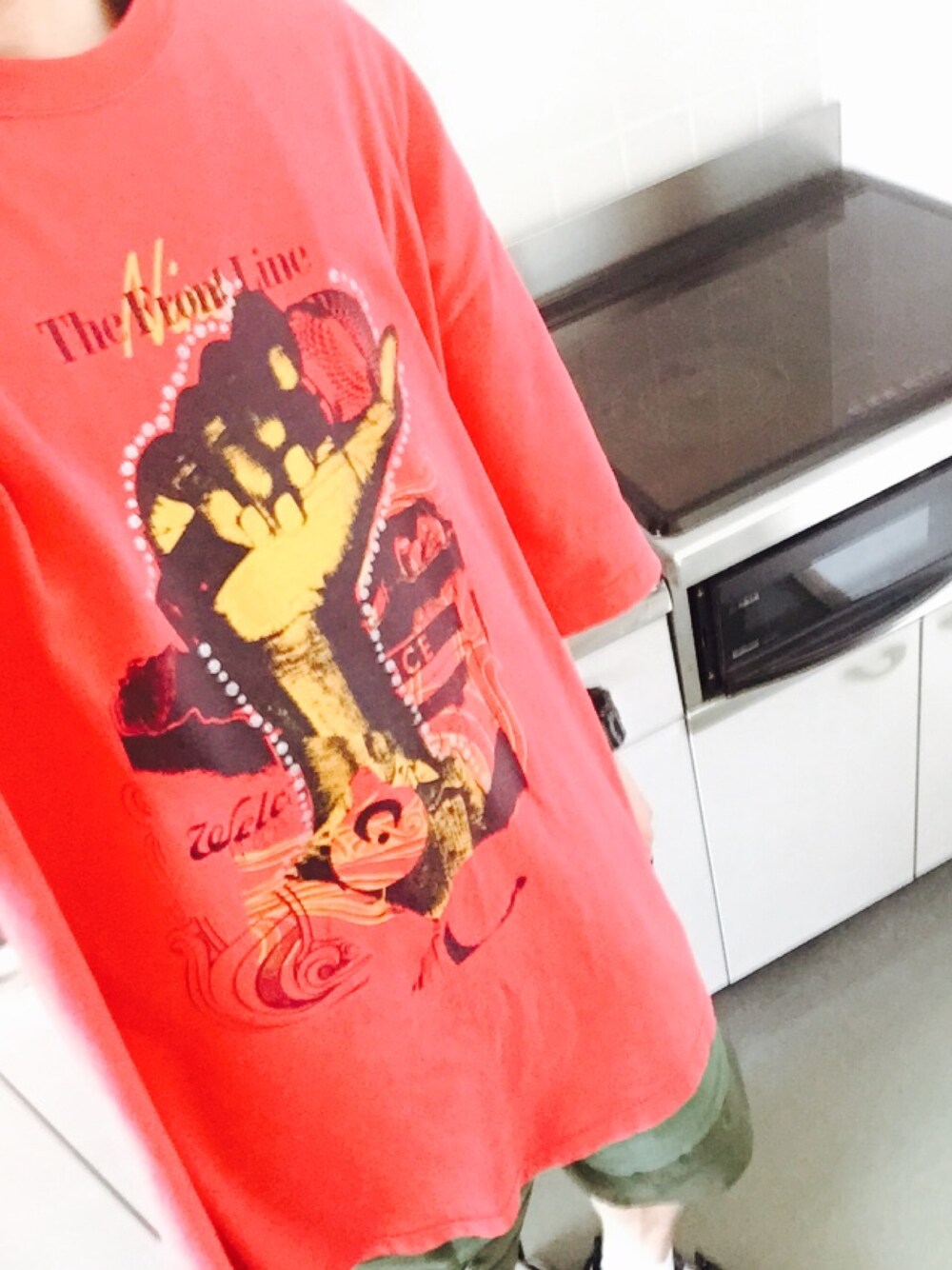 ビッグTにショーツ、サンダル。 見えないけどバケットハットも。