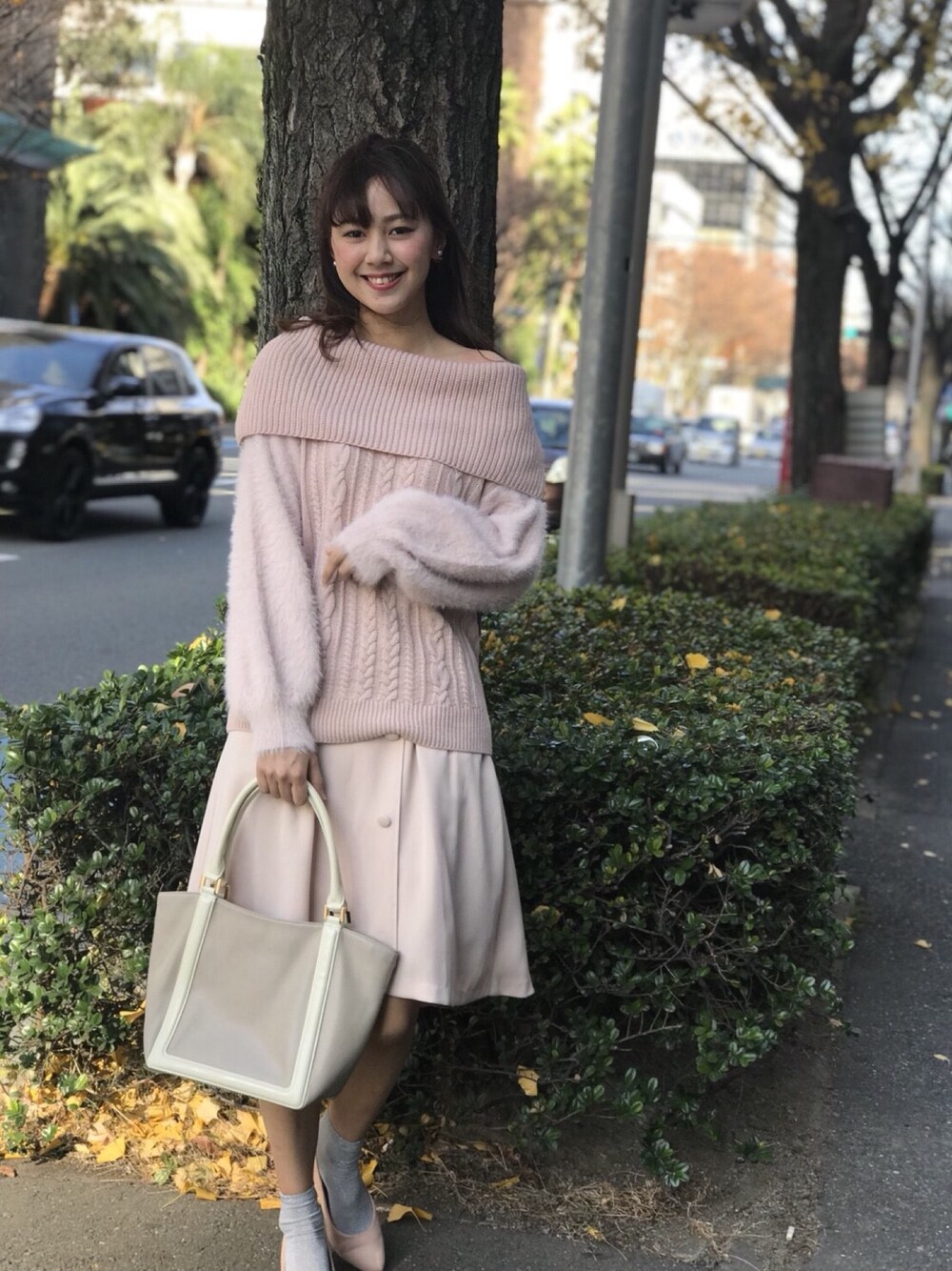 キレイ目 着て お出かけ! 淡いシナモン系ピンクのカラーもお気に入り! 袖のシャギーも可愛く オフショルダーとオフタートルで 着れるのも 嬉しい