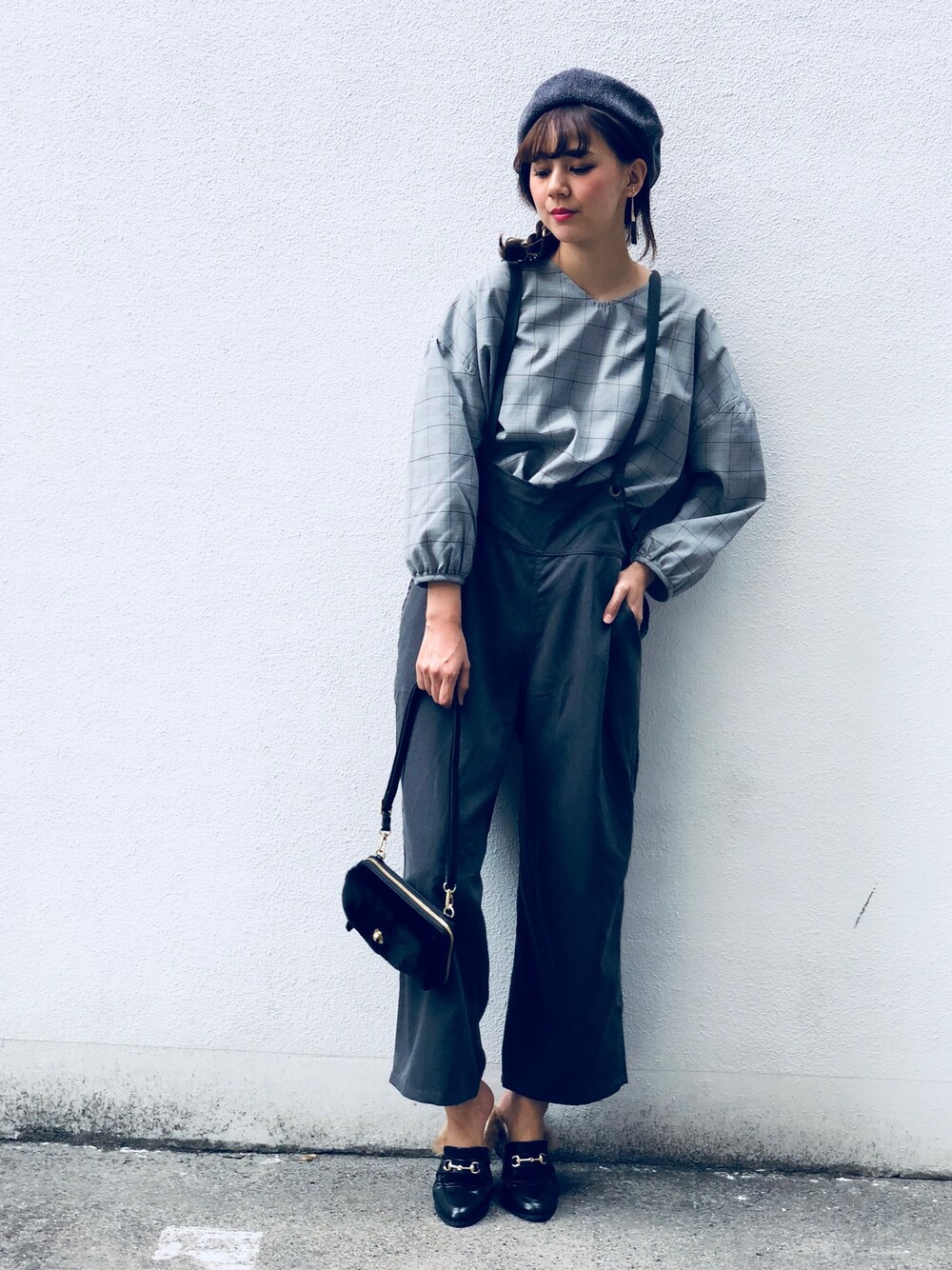 大人サロペット4❣️新発売です🎵 定番のサロペット、新しいシリーズは ストレッチが入って着心地良い生地。 旬のコーデは、グレンチェックのブラウスと合わせて。