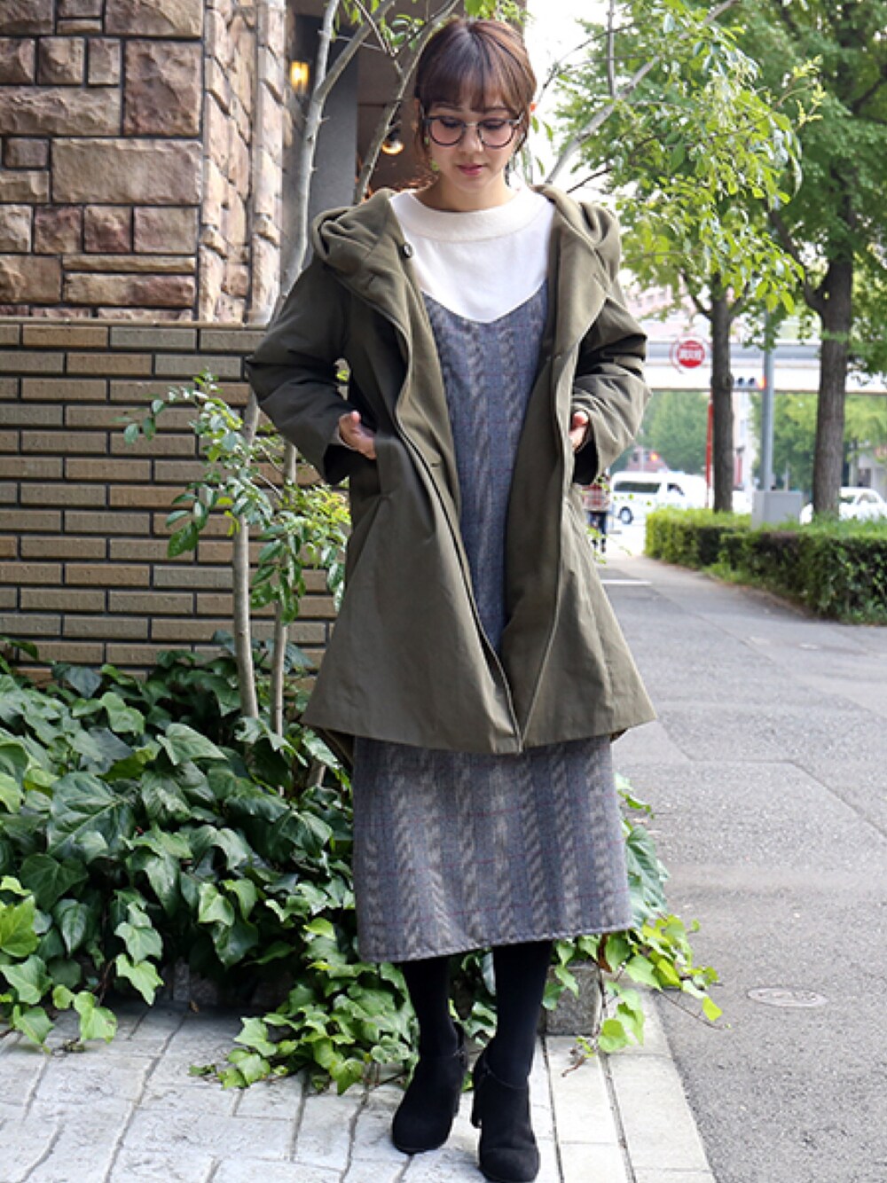 libelle more staffのジャンパースカート「グレンチェックジャンパースカート」を使ったコーディネート