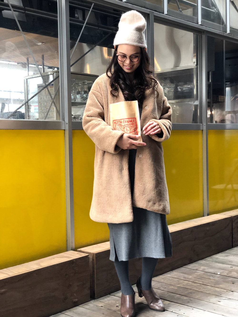 libelle more staffのブルゾン「大人女子の ふわもこボア ノーカラーコート ティディーベアブルゾン」を使ったコーディネート