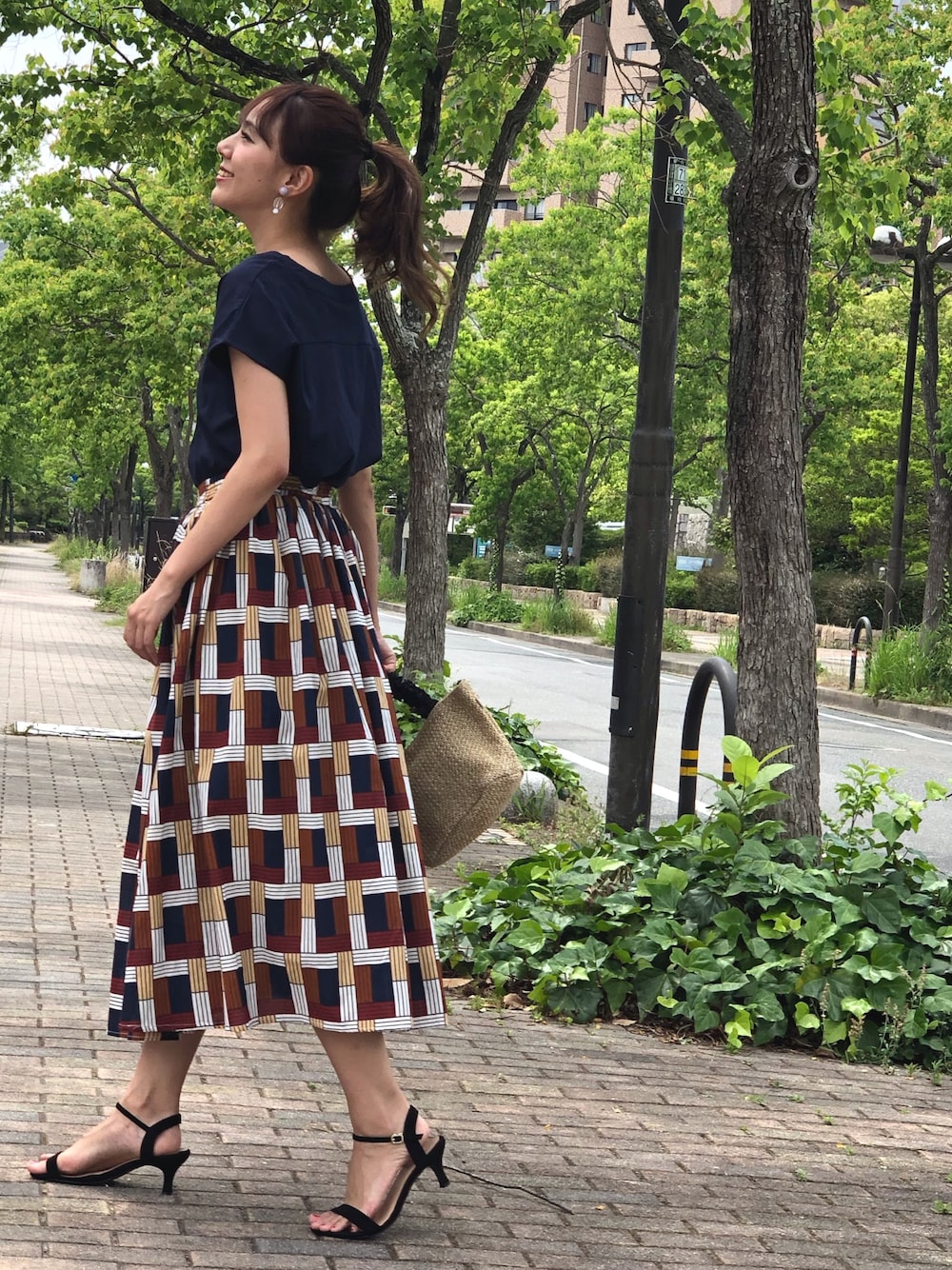 libelle more staffのスカート「クロスチェック柄フレアスカート」を使ったコーディネート