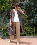 ストライプワンピースを羽織りとして★ コットン100%でふんわりした着心地。 チノパンとTシャルと合わせて、ちょっぴりおじコーデ♪ いつもイイね、お気に入りありがとうございます!